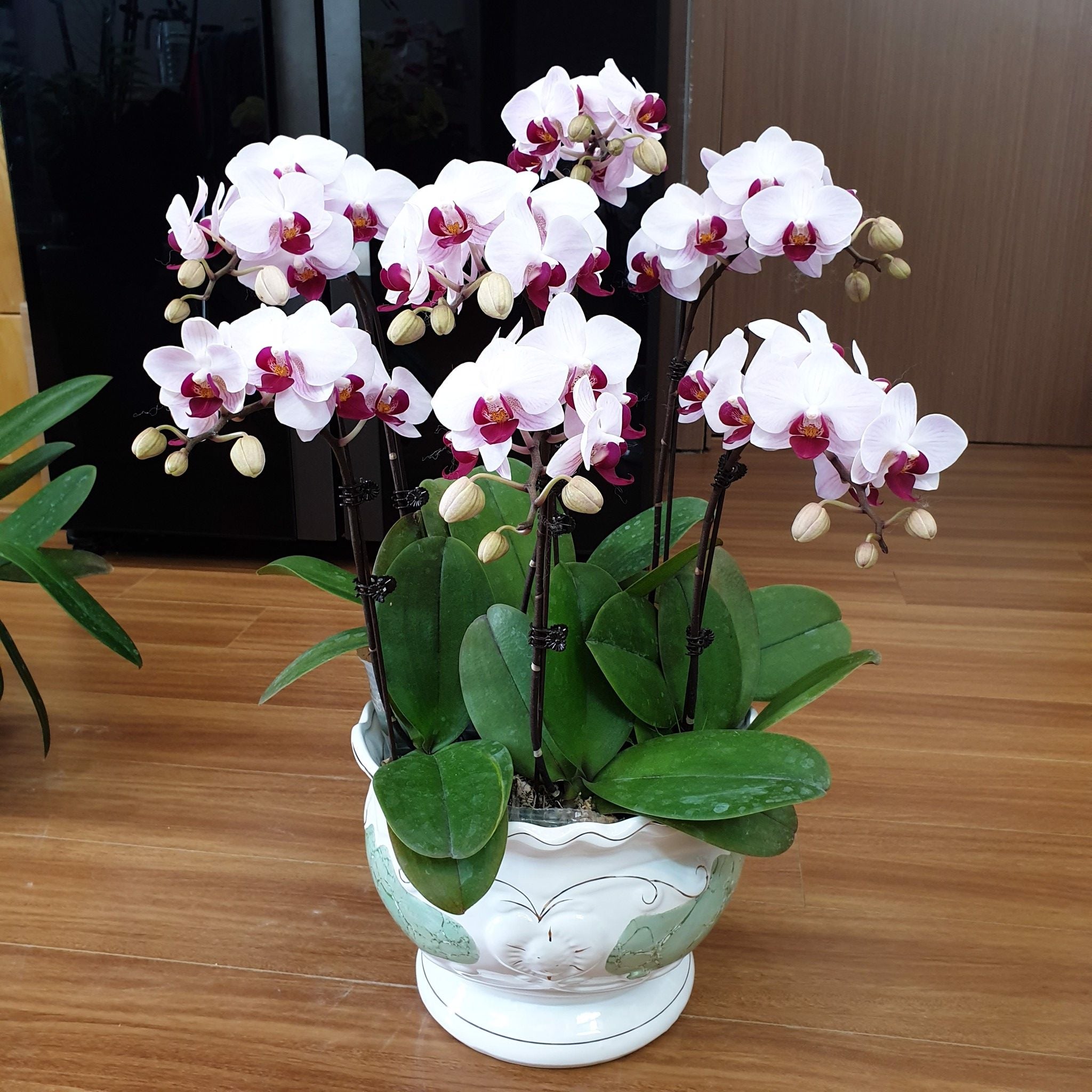 Hồ điệp là loài hoa không ưa nước. Kiểm tra giá thể trong bầu khi đã khô. Sờ tay vào không có cảm giác ướt thì tưới khoảng 60- 70cc nước lọc / 7 - 10 ngày.