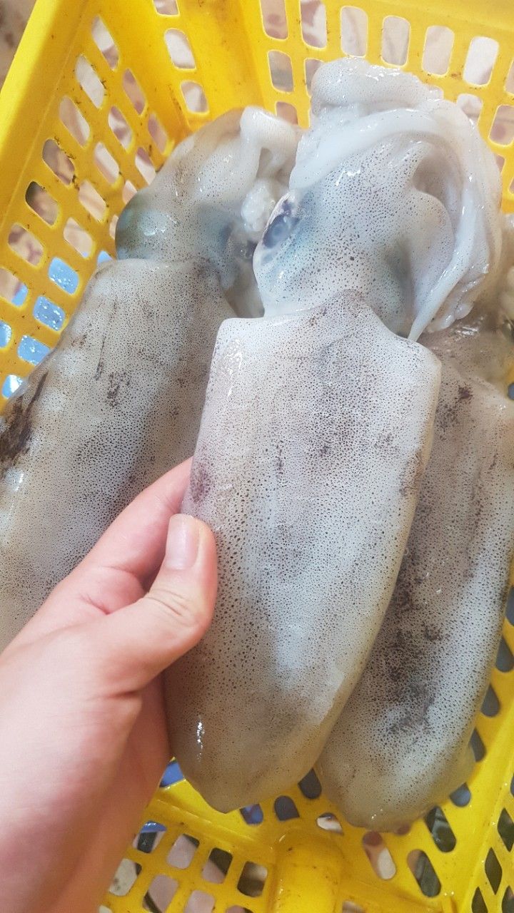 Mực lá phú quốc câu sống vào bờ, rồi cấp đông để bay ra HN ạ